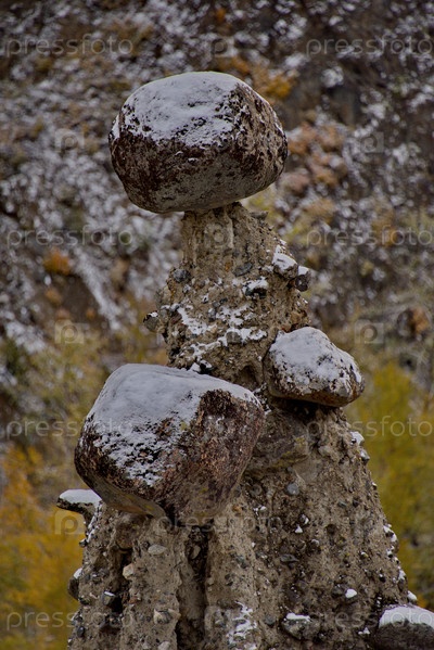 Россия. Юг Западной Сибири, Горный Алтай. Урочище Аккурум с каменными грибами в ущелье Карасу Алтайского заповедника на правом берегу реки Чулышман