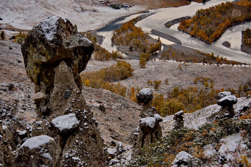 Россия. Юг Западной Сибири, Горный Алтай. Урочище Аккурум с каменными грибами в ущелье Карасу Алтайского заповедника на правом берегу реки Чулышман