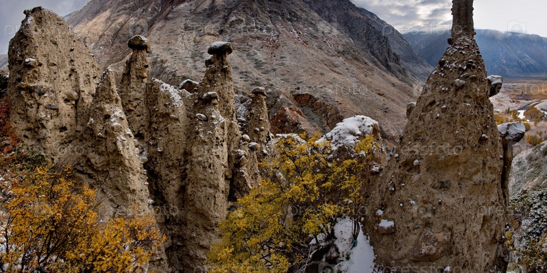 Россия. Юг Западной Сибири, Горный Алтай. Урочище Аккурум с каменными грибами в ущелье Карасу Алтайского заповедника на правом берегу реки Чулышман
