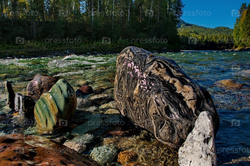 Россия. Западные Саяны. Разноцветные минералы необычной красоты в горных притоках реки Казыр