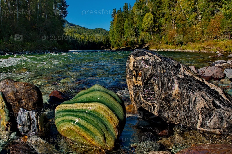 Россия. Западные Саяны. Разноцветные минералы необычной красоты в горных притоках реки Казыр