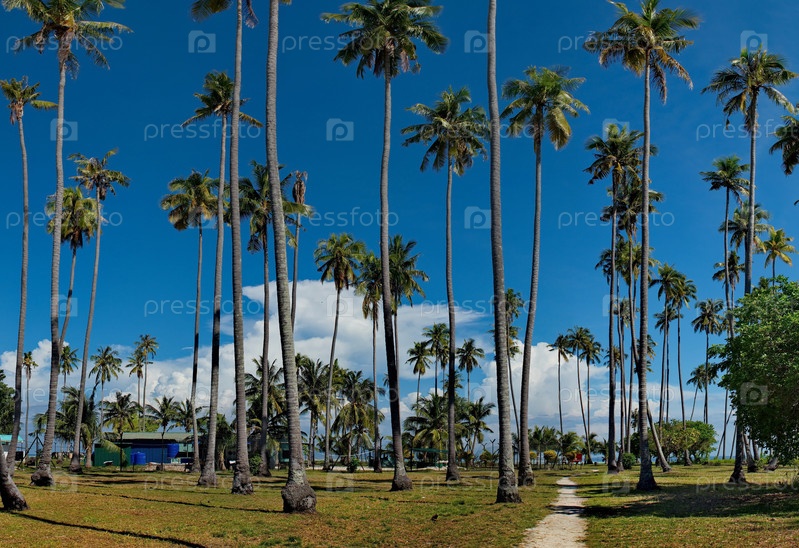 Малайзия. Кокосовые пальмы на многочисленных рифовых островах близ острова Борнео, недалеко от города Семпорна