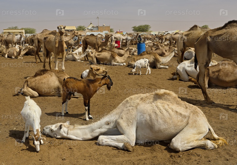 Западная Африка. Мавритания. Одногорбые верблюды на столичном верблюжьем рынке, где ежедневно продается и обменивается огромное количество верблюдов разных пород и возрастов
