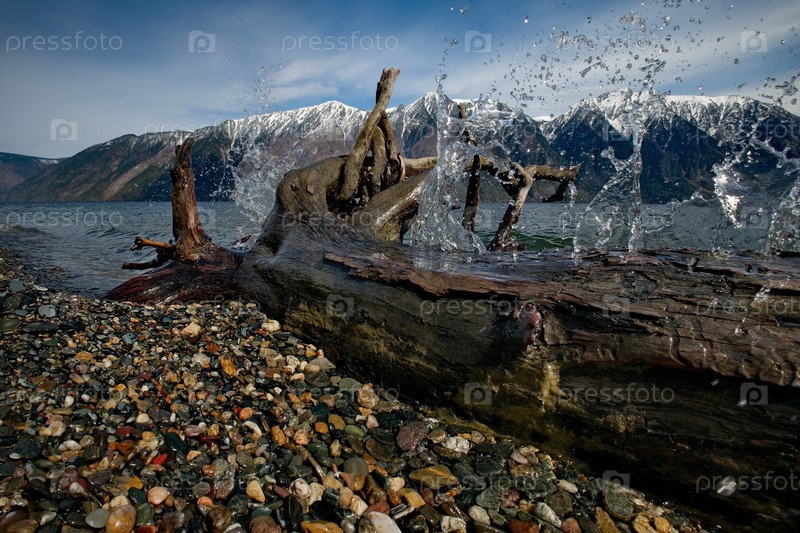 Россия. горный Алтай. Причудливые коряги на южном берегу Телецкого озера недалеко от устья реки Чулышман