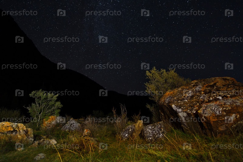 Россия. Юг Западной Сибири. Каменные россыпи в ночной долине реки Чулышман в горах Алтая