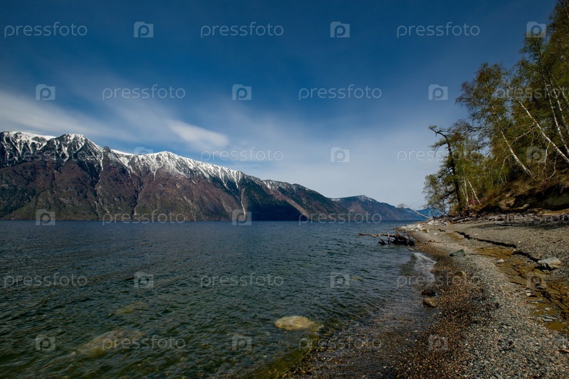 Россия. Юг Западной Сибири, Горный Алтай. Разноцветные камни на берегу Телецкого озера в районе устья реки Чулышман