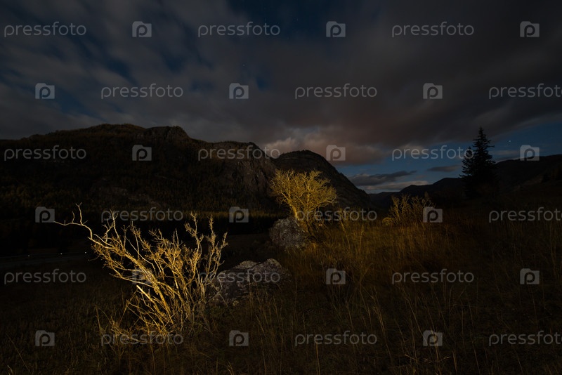 Россия. Юг Западной Сибири. Каменные россыпи в ночной долине реки Чулышман в горах Алтая