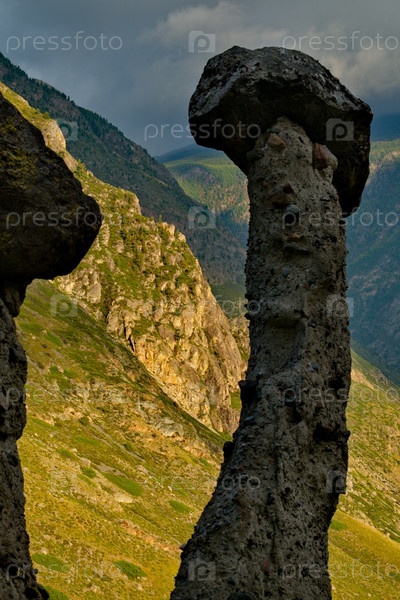 Россия. Юг Западной Сибири, Горный Алтай. Урочище Аккурум с каменными грибами в ущелье Карасу Алтайского заповедника на правом берегу реки Чулышман