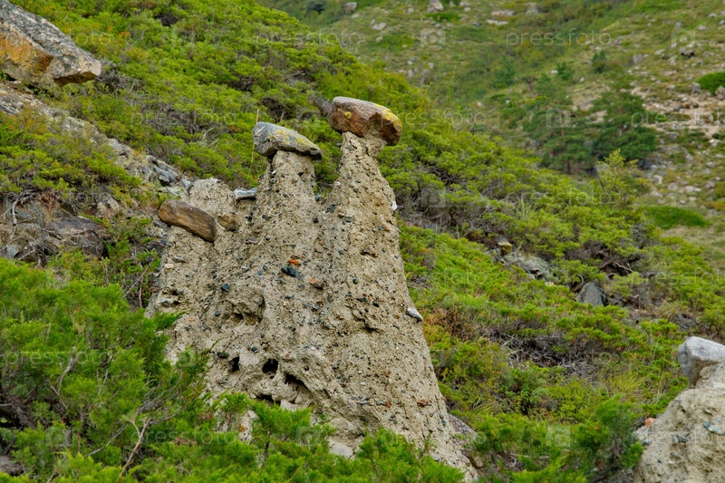 Россия. Юг Западной Сибири, Горный Алтай. Урочище Аккурум с каменными грибами в ущелье Карасу Алтайского заповедника на правом берегу реки Чулышман