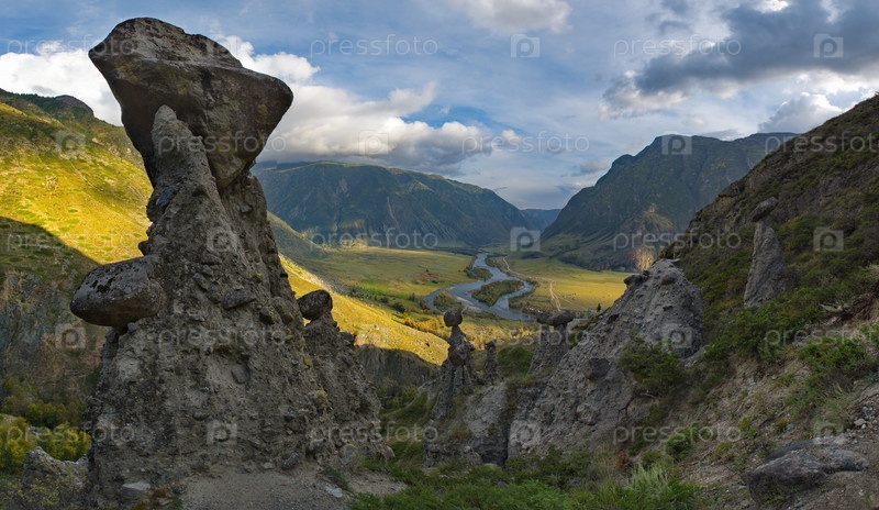 Россия. Юг Западной Сибири, Горный Алтай. Урочище Аккурум с каменными грибами в ущелье Карасу Алтайского заповедника на правом берегу реки Чулышман