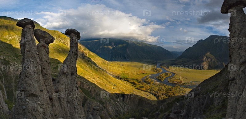 Россия. Юг Западной Сибири, Горный Алтай. Урочище Аккурум с каменными грибами в ущелье Карасу Алтайского заповедника на правом берегу реки Чулышман