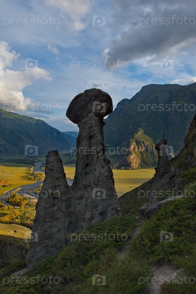 Россия. Юг Западной Сибири, Горный Алтай. Урочище Аккурум с каменными грибами в ущелье Карасу Алтайского заповедника на правом берегу реки Чулышман