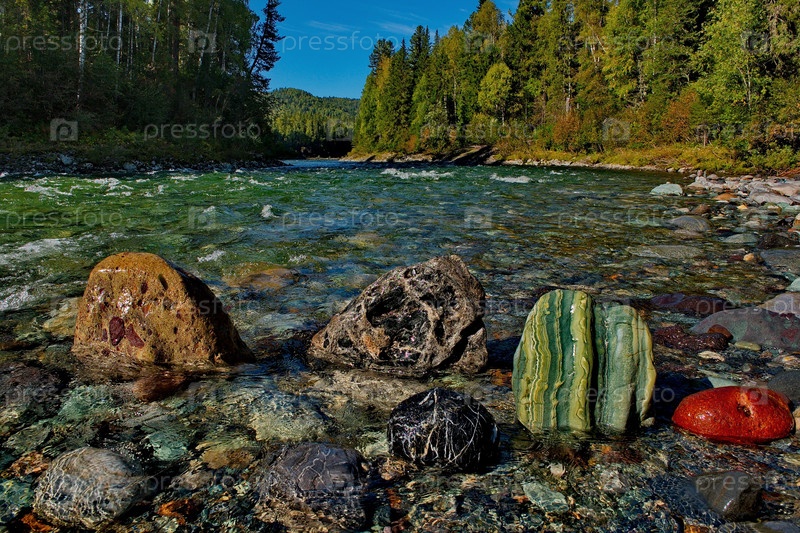 Россия. Западные Саяны. Разноцветные минералы необычной красоты в горных притоках реки Казыр