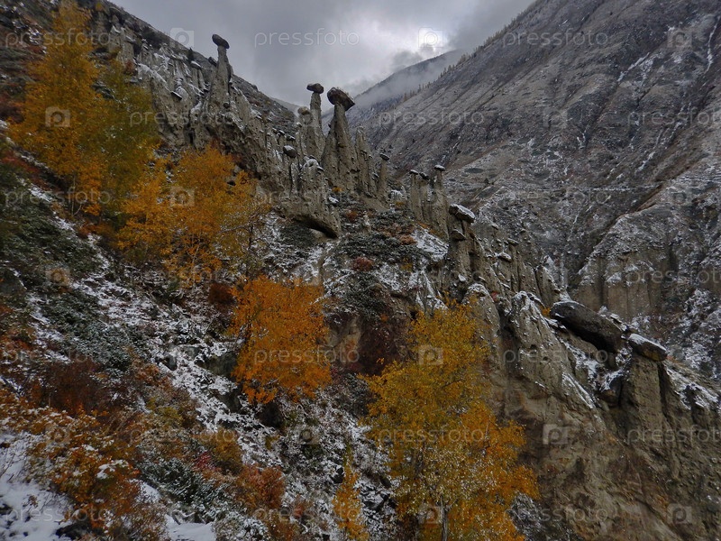 Россия. Юг Западной Сибири, Горный Алтай. Урочище Аккурум с каменными грибами в ущелье Карасу Алтайского заповедника на правом берегу реки Чулышман