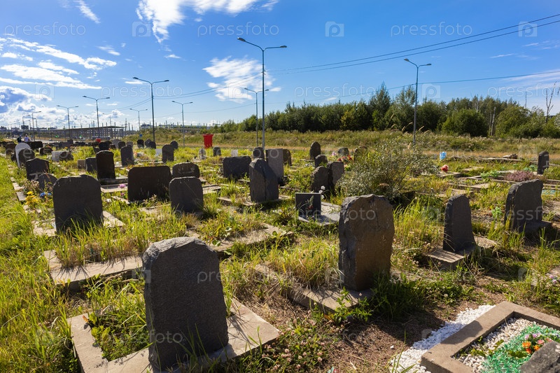 Захоронения на кладбище домашних животных в солнечный день - Санкт-Петербург, Россия, Июль 2023