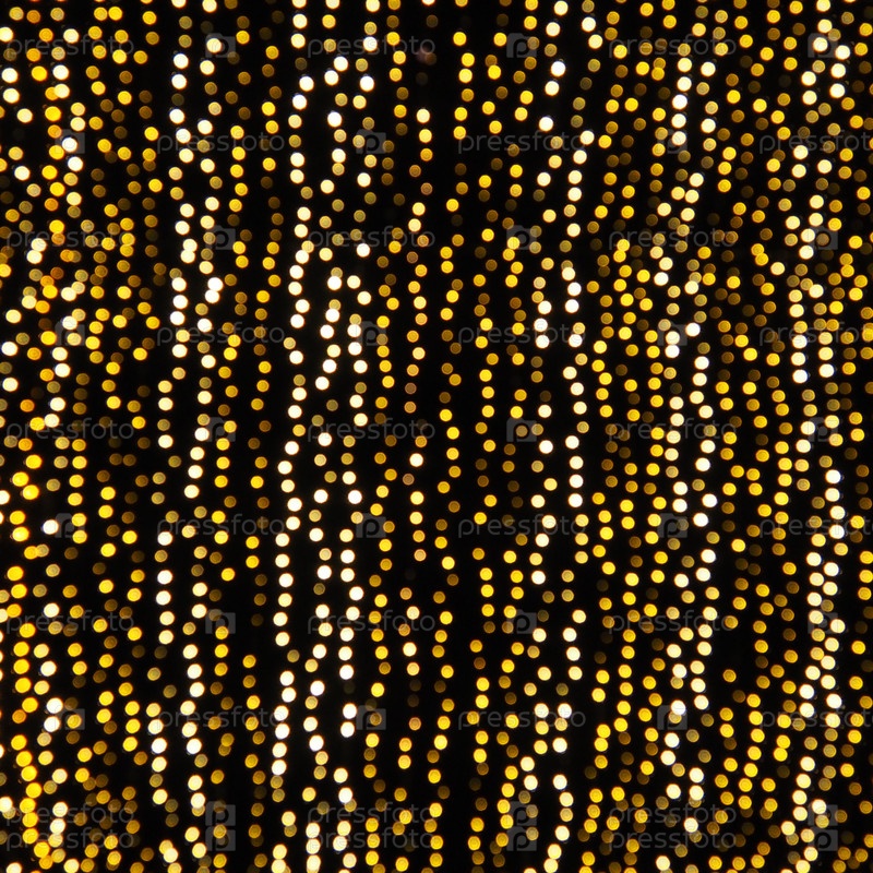 Висящие гирлянды на фоне ночного неба. Праздничное оформление улиц города. Гирлянды из желтых, белых и золотых фонарей и лампочек. Красивый фон для Нового года, Рождества