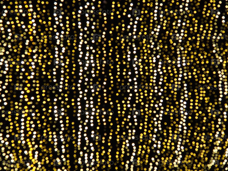 Висящие гирлянды на фоне ночного неба. Праздничное оформление улиц города. Гирлянды из желтых, белых и золотых лампочек и лампочек. Красивый фон для Нового года, Рождества