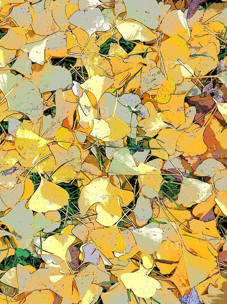 Листья билоба гинкго билоба лежат на земле. Желтая листва. Гинкго — род листопадных голосеменных растений, реликтовых растений класса Гинкго. Осень в городском парке или лесу. Естественный фон