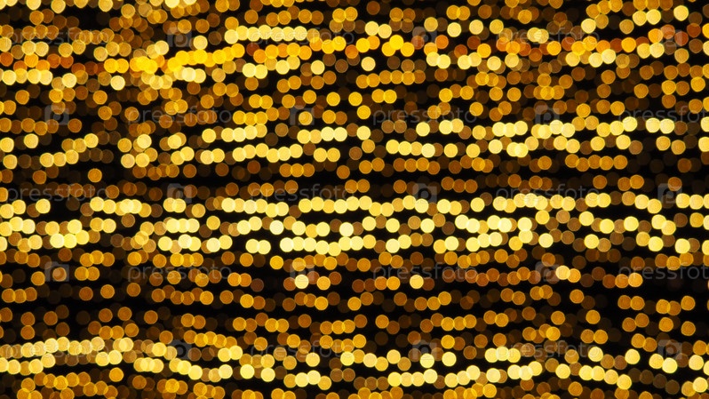 Боке подчеркивает. Золотисто-желтый цвет мигает в темноте. Праздничный фон. Размытая расфокусировка. Украшение городских улиц. Много желтых шариков. Много желтых, белых и оранжевых кругов