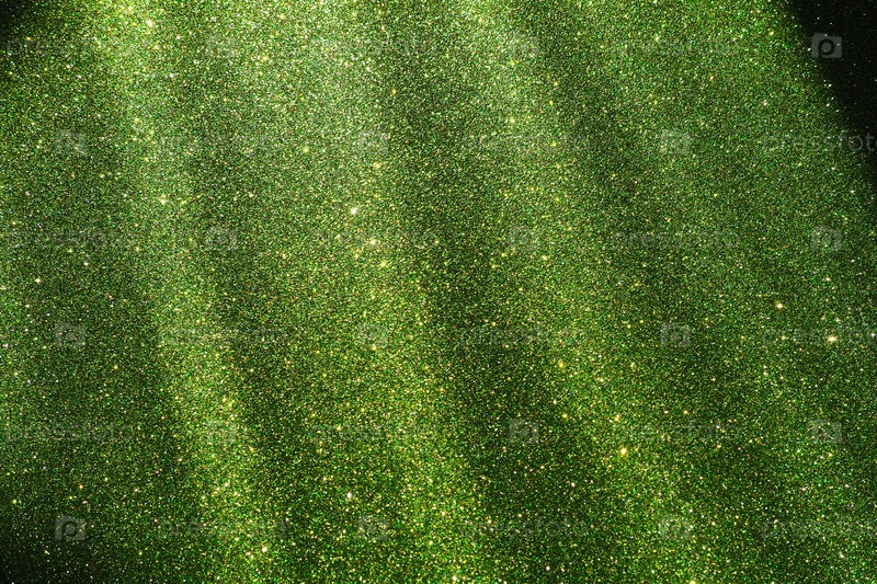 Лучи теплого зеленого цвета. Пыльная вспышка света. Роскошный, элегантный красивый фон. Премиальный абстрактный фон. Блестящий мерцающий. Косые лучи света, фотоны и радиация. Божественные лучи из космоса
