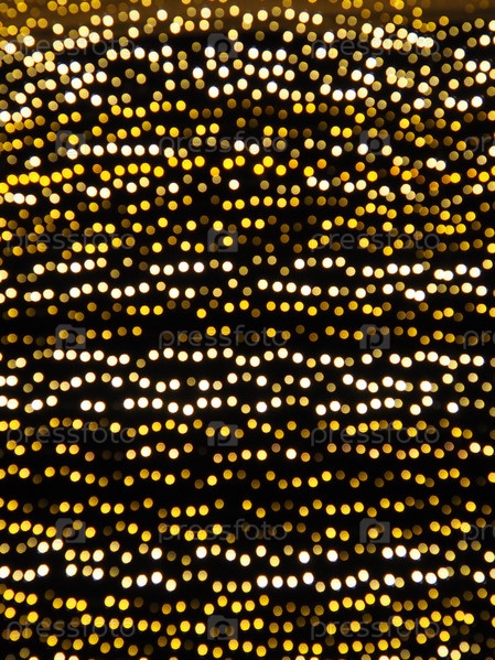 Висящие гирлянды на фоне ночного неба. Праздничное оформление улиц города. Гирлянды из желтых, белых и золотых лампочек и лампочек. Красивый фон для Нового года, Рождества