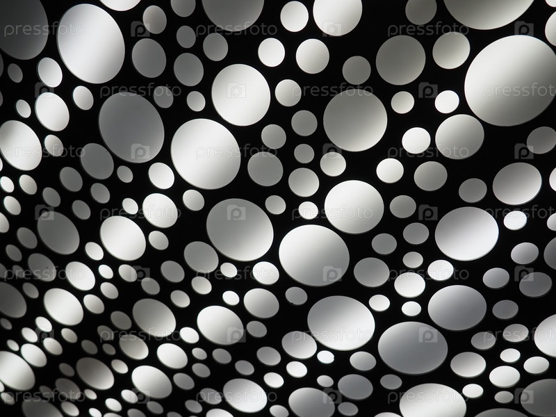 Абстрактные большие и маленькие белые и серые круги. Абстрактные световые полосы. Тема НЛО и урбанизации