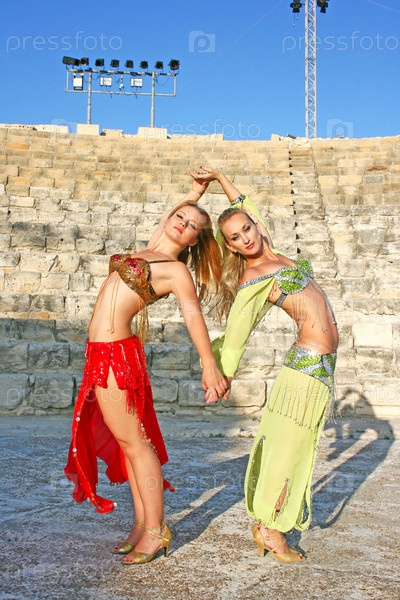 Девушки танцовщицы в древнем амфитеатре Куриона, Кипр