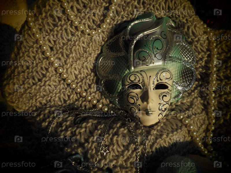 Карнавальная маска на вязаном фоне с бисером и блестками. Элемент костюма карнавального фестиваля
