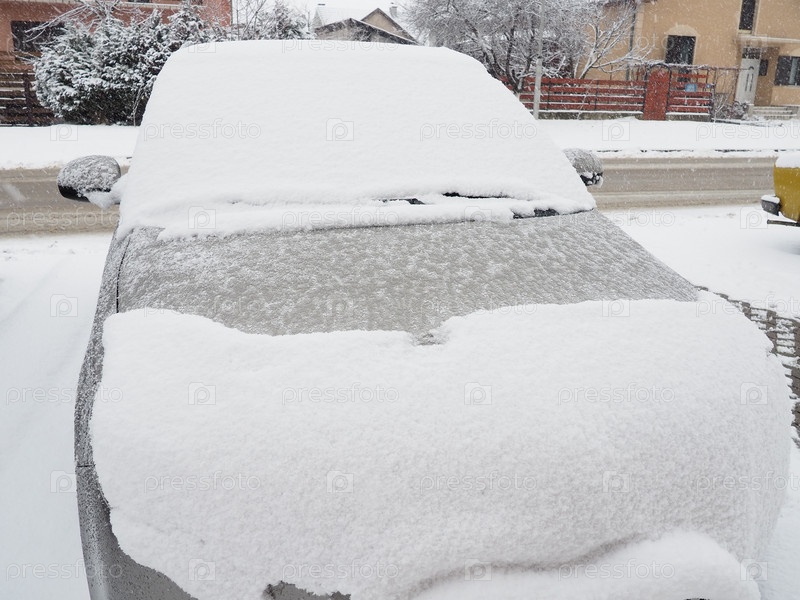 Снег и лед на лобовом стекле, ретровизорах и зеркалах заднего вида автомобиля. Зимние условия вождения. Уборка снега. Дорожное движение зимой. Металлический автомобиль. Снежные сугробы и слякоть