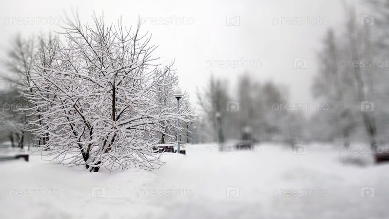 Городской парк после снегопада днем