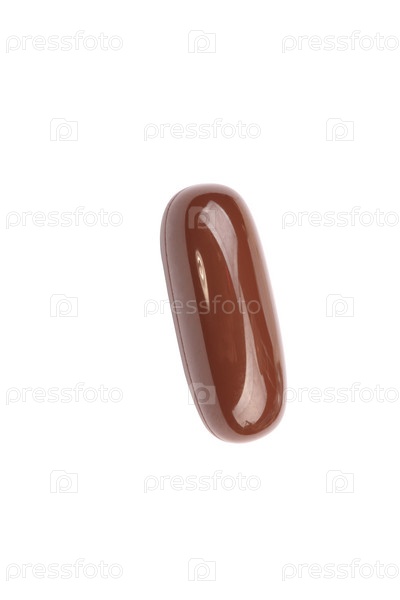 Одна коричневая желатиновая таблетка, изолированная на белом фоне
