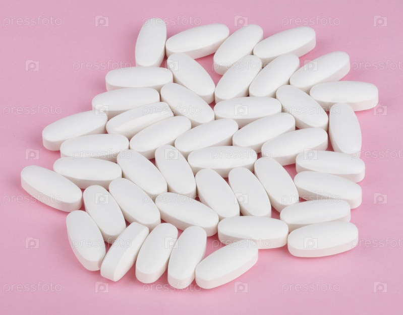 Белая таблетка на розовом фоне