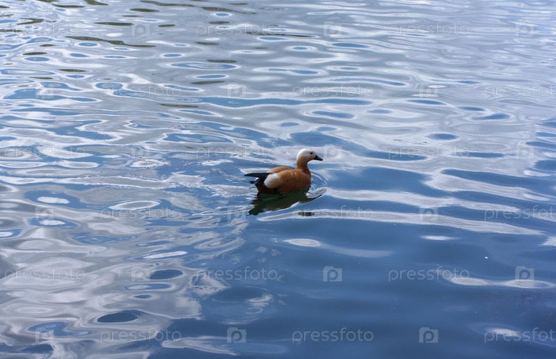 Утка на воде в пруду городского парка в сухой солнечный летний день