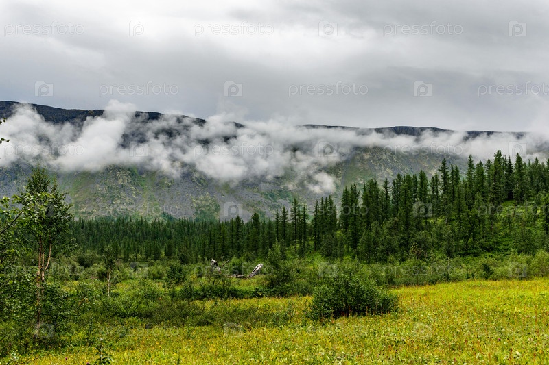 Долина и горы на Приполярном Урале в летний день