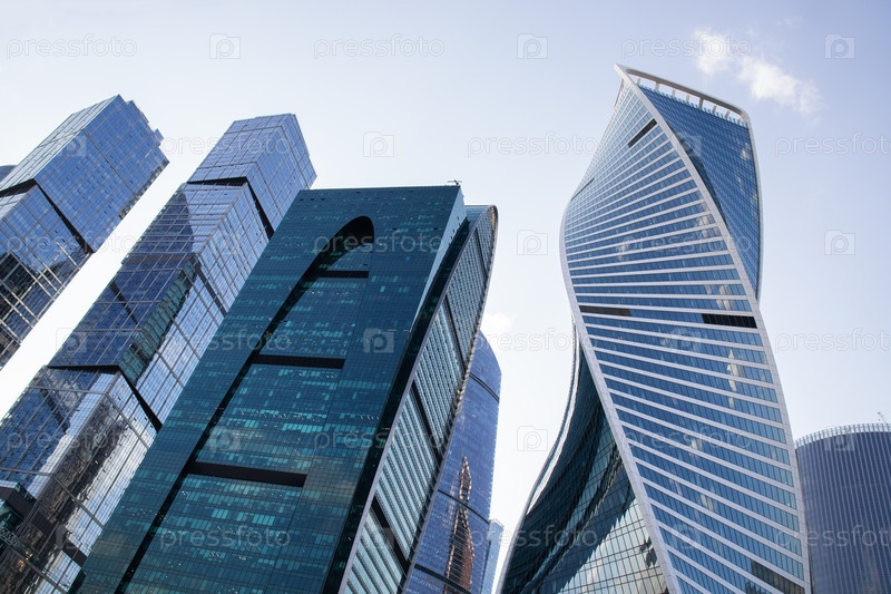 Башни делового центра Москва-Сити, вид снизу - Москва, Россия, Июнь 2023