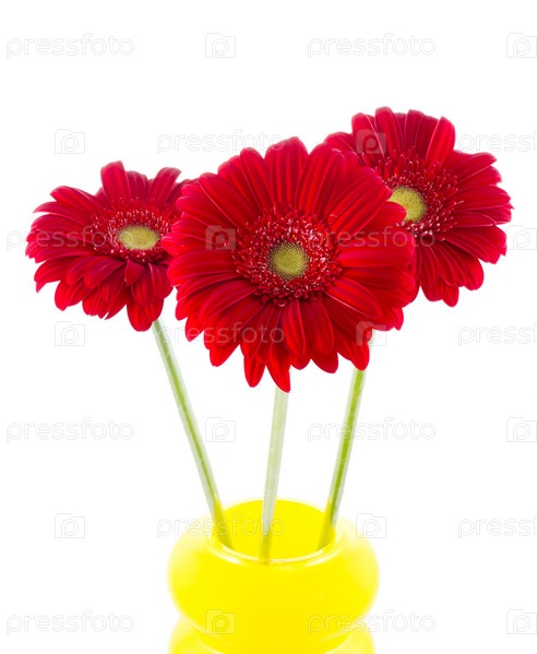 Три красных герберы в вазе