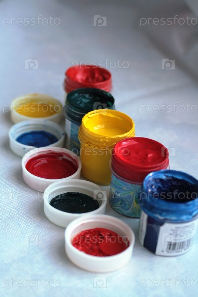 Краски в банках на белом фоне