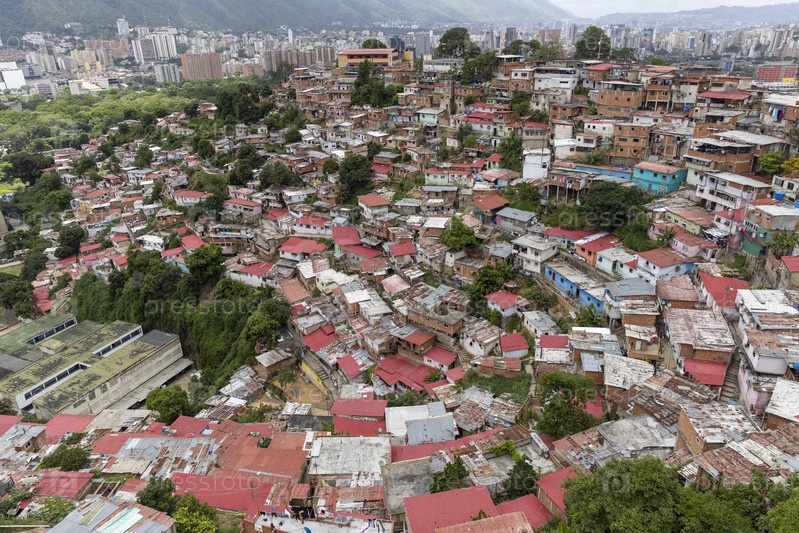 Вид сверху на баррио (трущобы) Каракаса