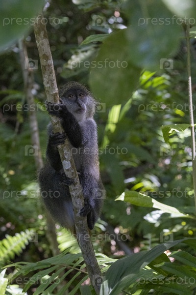Обезьяна на дереве в национальном парке Лес Джозани на Занзибаре в Танзании