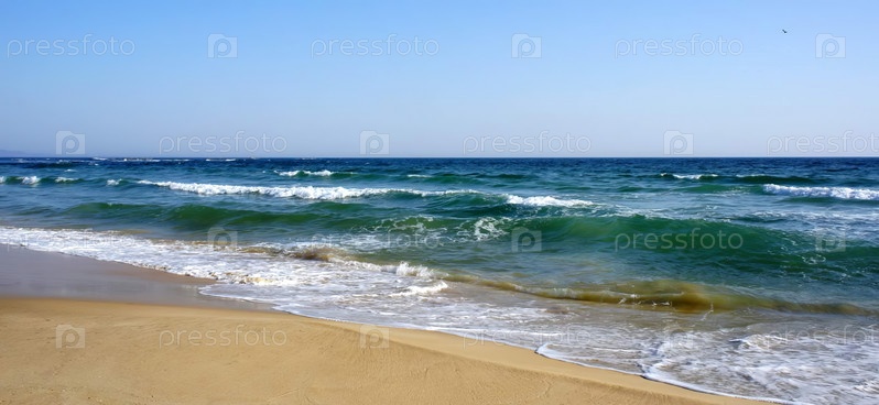 Морской пейзаж с красивым песчаным пляжем