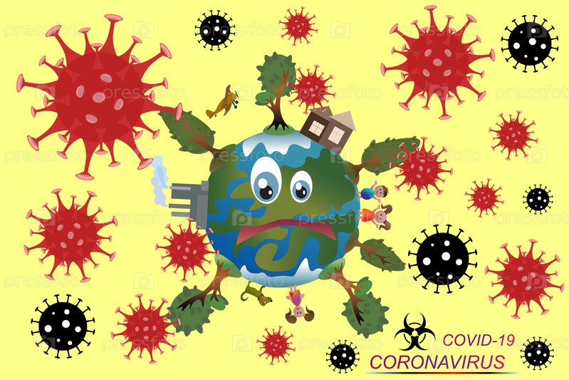 Распространение коронавируса по всему миру. Концепция заражения планеты, эпидемия вирусного гриппа, пневмония. Пандемия, биологическая опасность. COVID-19