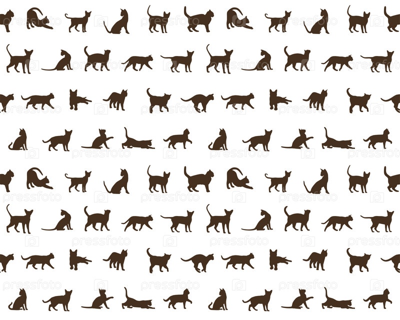 Бесшовный фон с силуэтами домашних кошек