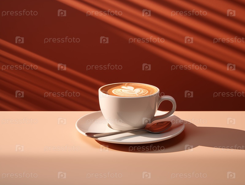 Чашка кофе солнечным утром с тенями на стене