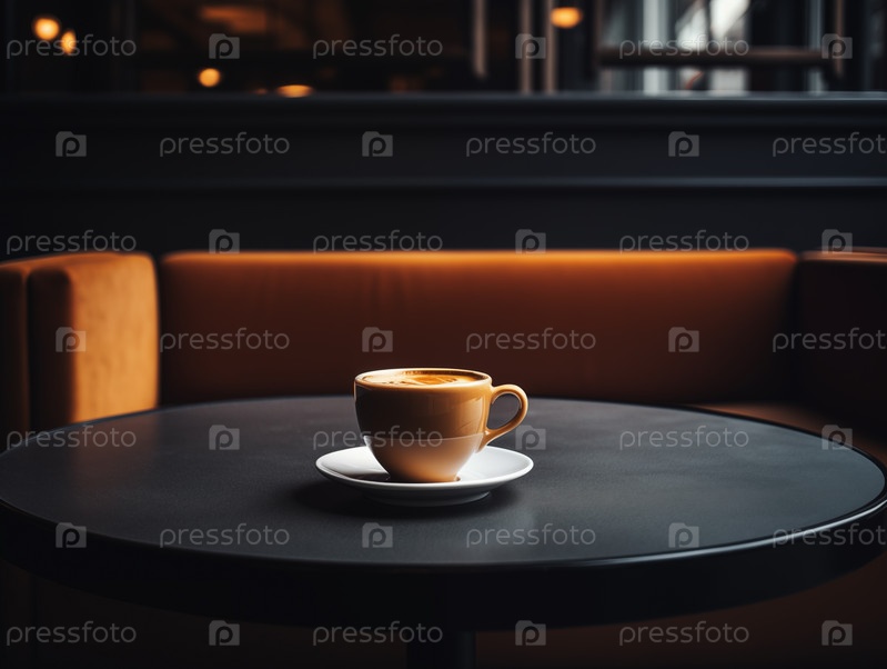 Чашка кофе на столе в темном и уютном кафе