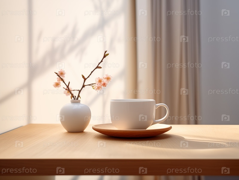 Чашка на столе с цветами