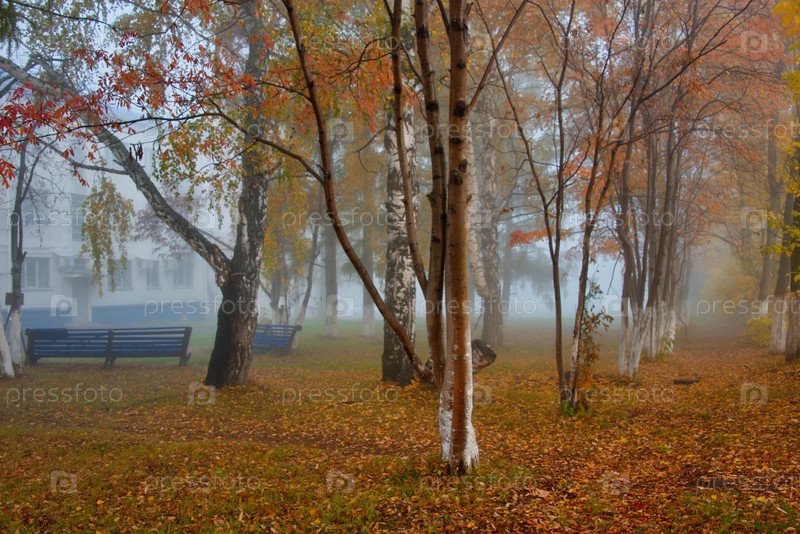 Россия. Юг Западной Сибири, Кемерово. Раннее туманное утро в городском парке