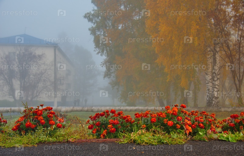Россия. Юг Западной Сибири, Кемерово. Раннее туманное утро в городском парке