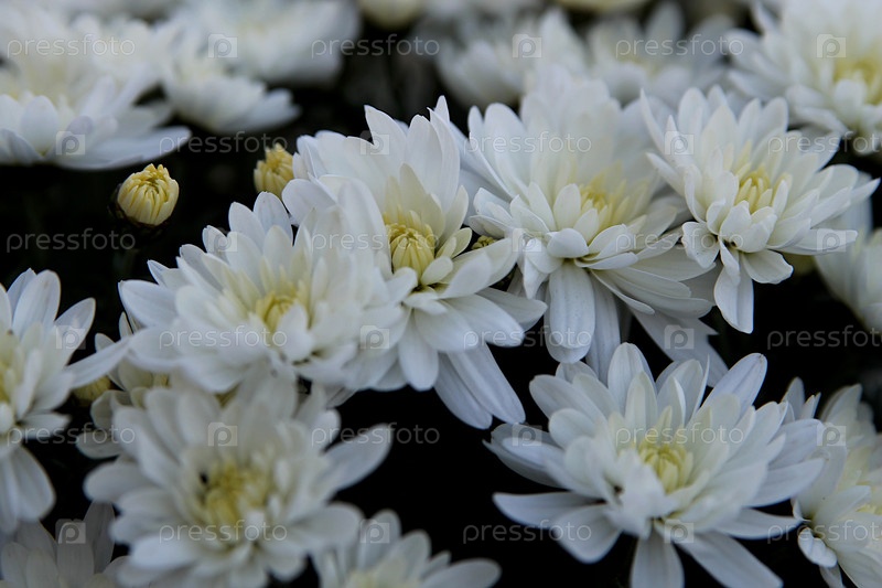 Белые хризантемы темный фон