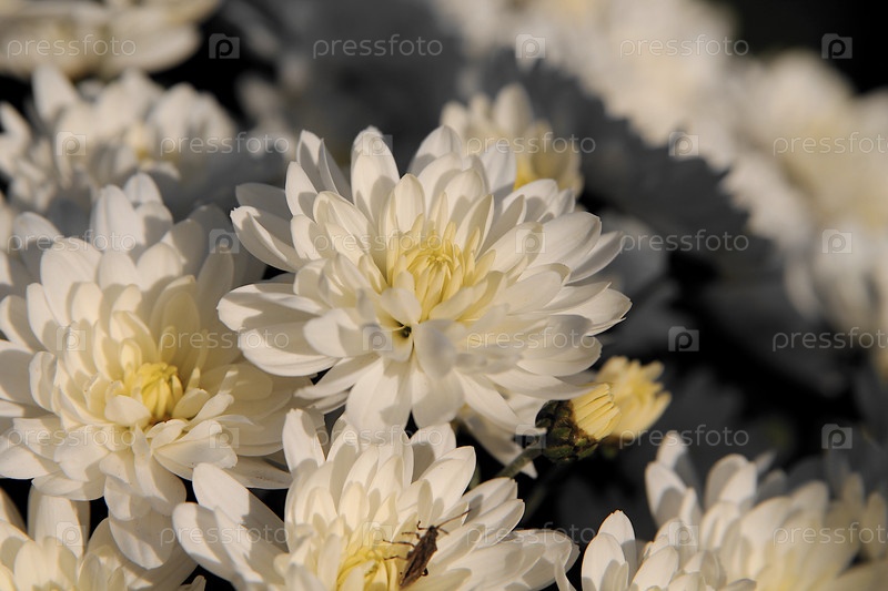белые хризантемы в саду