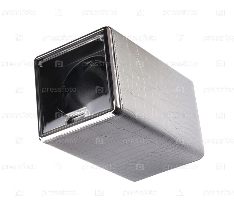 Черные автоматические одиночные часы Winder изолированы на белом фоне в сухой солнечный день